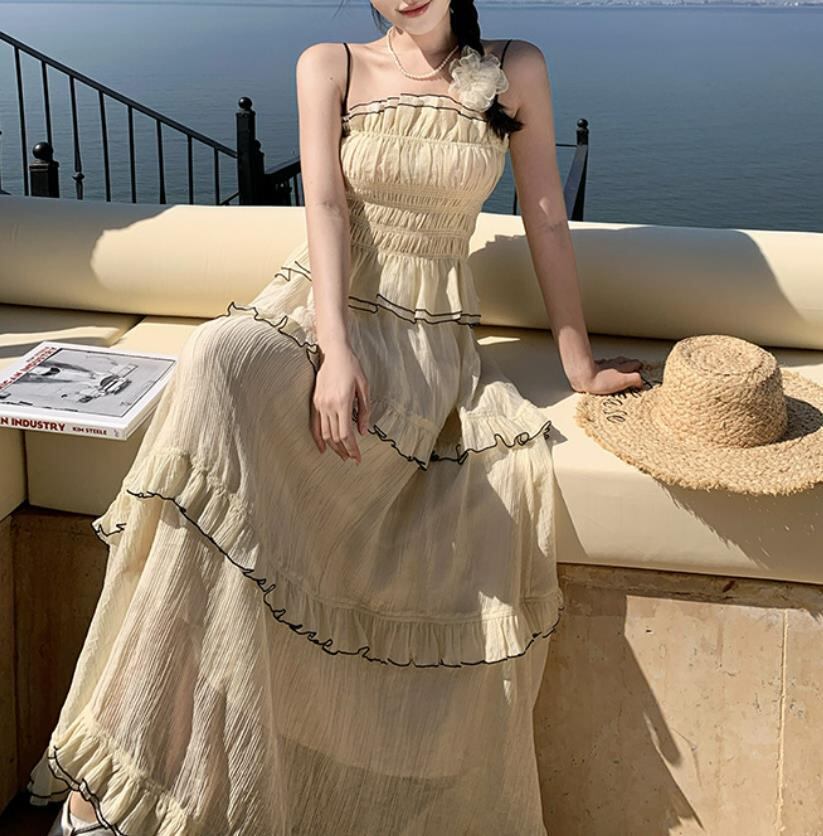 女 レディース 袖なし 吊りスカート ロング ワンピース 台型スカート