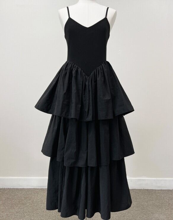 2025年夏新作 ワンピース ロング丈ワンピース キャミワンピ 異素材 サスペンダー Sweet 可愛い