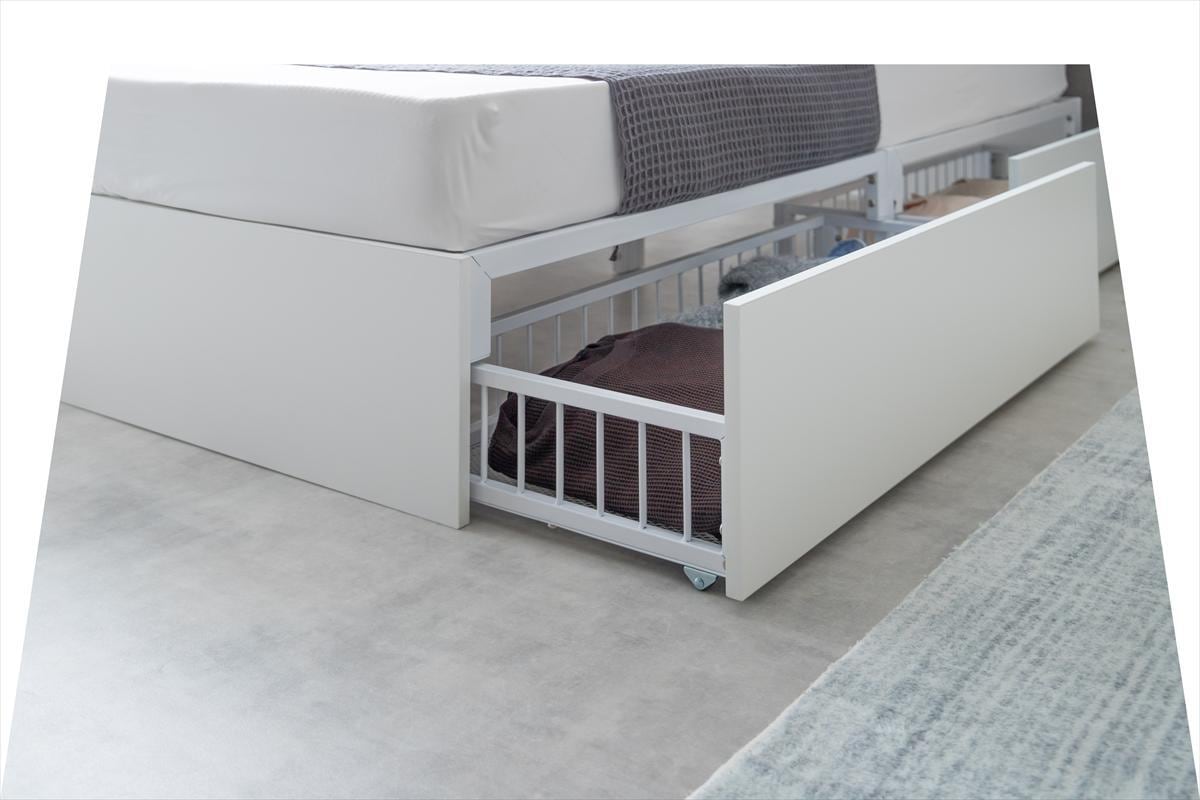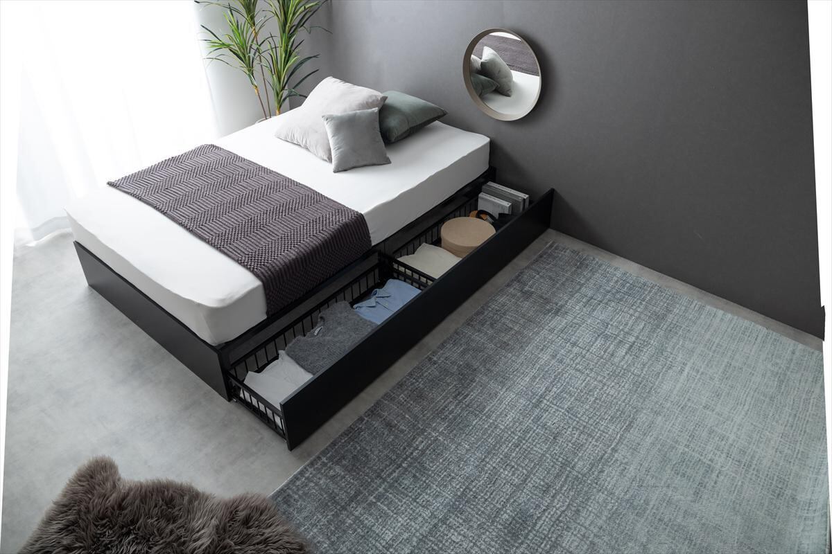 スタイリッシュな美しさとパイプの耐久性を兼ね備えた『Stock(ストック)』引出し収納ベッド