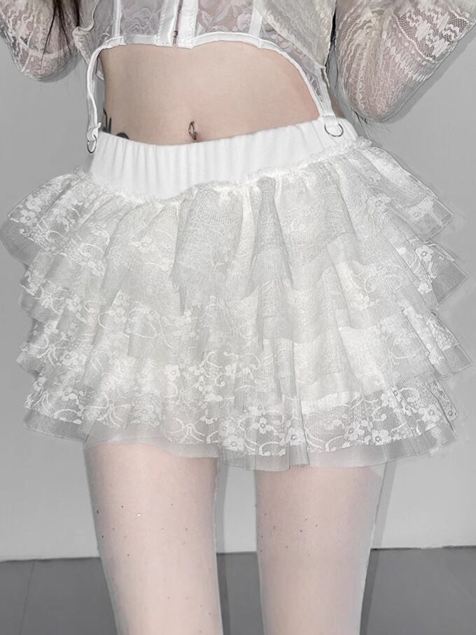 2025春夏新作 ボトムス 女 レディース ハイウエスト レース ミニスカート 台型スカート